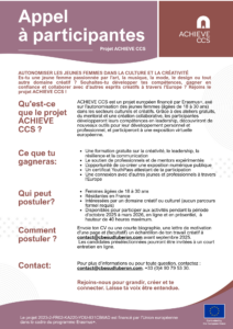 C’est sur la base de ce constat qui est le même dans d’autres pays européens que le CBE Sud Luberon Val de Durance est coordinateur du projet ACHIEVE CCS qui porte initialement sur le soutien aux femmes entre 18 et 30 ans, at que nous avons choisi d’ouvrir aux autres femmes également, dans la limite des places disponibles.
